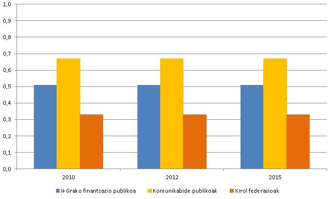 I+G arloaren finantzaketa publikoari buruzko adierazle berriak (2015erako sartua) aurretik hain agerian ez dagoen desberdintasun baten hausnarketa du ardatz, kirol-federazioen esparruan ez bezala, non luzaroan ezagututako desberdintasun bat gainditzeko lan egiten baita, gizarte-eskari zabal bati erantzunez.