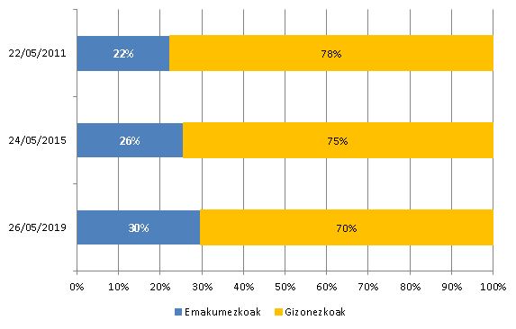 Aurreko urteetako bozetan desoreka handiagoak zeudela adierazten dute kopuruek, eta zenbatutako aurrerapenak itxaropentsu dirudite alor horretan.
