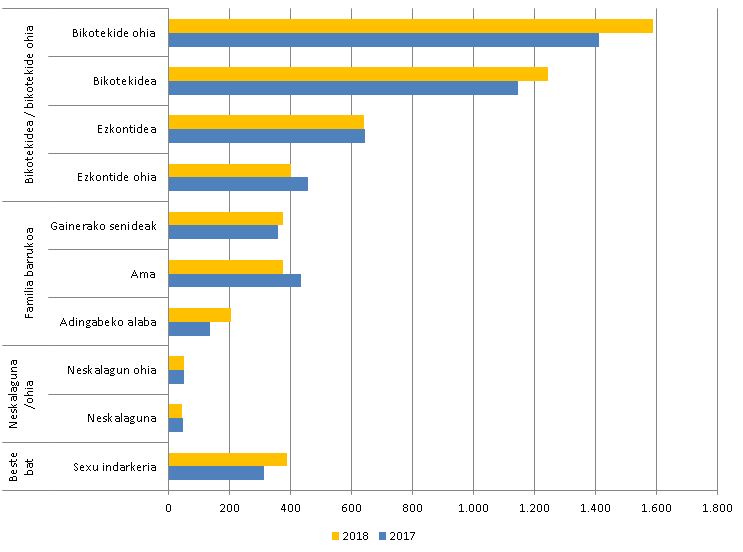 2018an, 4.244 emakume izan dira indarkeriaren biktima Euskal Autonomia Erkidegoan, eta gehien-gehienak bikotekidearen edo bikotekide ohiaren biktima izan dira. Emakume batek genero-indarkeriako gertakari bat baino gehiago paira ditzake urte berean.