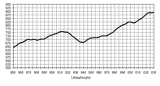 Biztanleria landuna hazi egin da, 2002ko lehenengo hiruhilekoaren aldean eta 8.500 landun gehiago dira, hau da, %1 inguru gehiago. Igoera hori %5 ingurukoa izan da emakumezkoentzat, eta gizonezkoentzat, aldiz, %1,5eko jaitsiera. Lurralde Historikoka, Bizkaiak eta Gipuzkoak, azken hamabi hilabeteetan, %1 baino apur bat landun gehiago dituzte, eta Arabak, ostera, gutxi batzuk galdu ditu.