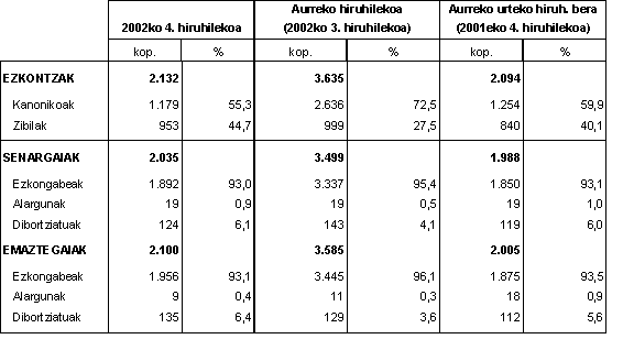 EZKONTZEN ESTATISTIKA (EZKE) 2002ko laugarren hiruhilekoa