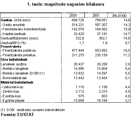 Sektore honek, guztira, 15.804 landun izan zituen 2001an, landunen guztizkoaren %1,9; haien artetik, %67 emakumezkoak ziren. Gizarte-zerbitzuek, gainera, 13.454 borondatezko eduki zituzten, eta talde horrek musu-truk egin zuen lan sektorean. Zuzeneko atentzioko 4.819 langile azpikontratuak kontuan izanik, enplegu-zifra %30 gehituko litzateke; langile azpikontratatu horien erdiek etxeko laguntza-zerbitzuaren erabiltzaileen etxeetan egin zuten lan.