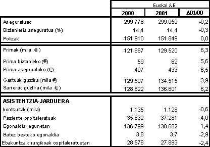 1.128.243 kanpo-kontsultari erantzun zieten guztira ALEek 2001ean, aurreko urtean baino %0,6 gutxiago, eta aseguratuko 3,8 kanpo-kontsulta egin ziren batez beste. Espezialitateka, kontsulta-bolumen handiena traumatologian izan zen (48 kontsulta 100 aseguratuko), eta haren atzetik tokoginekologia eta pediatria datoz (42 eta 41 kontsulta, hurrenez hurren).