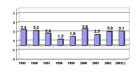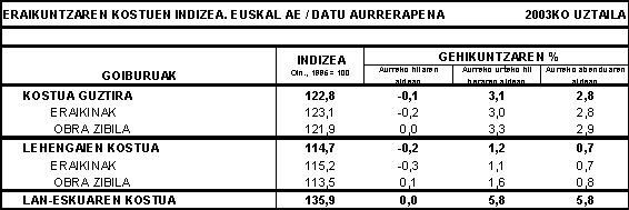 Sektoreak kontsumitutako lehengaien artetik, 2003ko uztailean, hauek izan dituzte inflazio-tasarik handienak: petroliotik eratorritakoak (%4,1), energia elektrikoa (%2,7), lur erreak (%0,3) eta ateratze-agregakinak (%0,3) lehengaiek. Bestalde, hileko batez besteko prezioen jaitsiera izan dute honakoek: kristala (%-2,7), burdina eta altzairua (%-1,8) eta leherkariak eta gasak (%-1,6) lehengaiek, besteak beste.