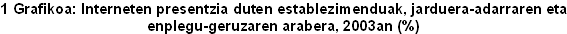 2003an, Interneten presentzia duten 10 langile edo gehiagoko enpresak, iazko %41etik oraingo %52ra pasa dira eta ehuneko hamaika puntu irabazi dituzte. 10 langiletik beherako enpresen (gehienak autonomoak) datuak barne hartuta, ehunekoa %15 arte jaisten da, baina hala ere, iazko mailaren aldean, ehuneko bost puntu irabazi dira.