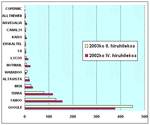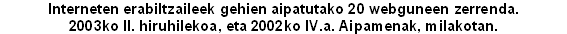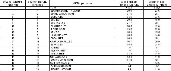 Azken hiru urte honetan ohitura denez, webguneen rankinean lehenengo tokietan ageri dira orain ere egunkari digitalak. 15 urte edo gehiago dituzten Interneten erabiltzaileek horrelako tokiak aipatzen dituzte lehentasunez; gero, erakunde-webguneak; eta, neurri txikiagoan, finantza-erakundeak. Gero eta gehiago aipatzen dira, berriz ere, prentsa-webguneak, aurreko hiruhilekoan baino 29.000 aipu gehiago egin baitizkiete. Egunkarien webguneei, hartara, 221.200 aipamen egin dizkiete, guztira.