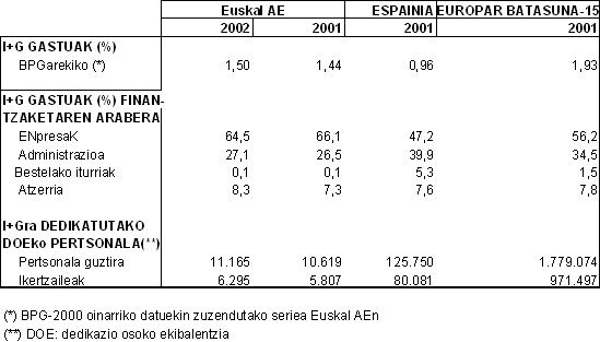 IKERKETA ETA GARAPEN TEKNOLOGIKOKO JARDUEREN INGURUKO ESTATISTIKA (I+G) 2002