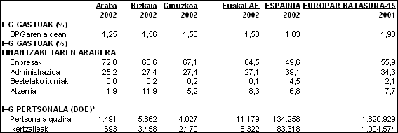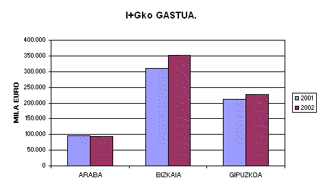 2002. urtean Euskal AEn 672 milioi euro gastatu ziren Ikerketa zientifiko eta Garapen Teknologikoko (I+G) jardueretan. Gastu honetatik, 351 milioi (%52,2) Bizkaiari dagozkio, 228 (%33,9) Gipuzkoari eta 93 (%13,9) Arabari, Eustatek eman dituen datuen arabera.