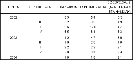 Lurralde historikoka, txikizkako sektoreko salmenta nominalen hazkunderik handiena, lehen hiruhileko honetan, Bizkaian gertatu da. Izan ere, % 3,4ko urte arteko hazkundea izan dugu hor, txikizkako salmenta ez-espezializatua nabarmen hazi delako. Ondoren, Araba dator, indize orokorrak % 2,4ko aldakuntza positiboa izan baitu; Gipuzkoak, ostera, hazkunde neurritsuagoa izan du, % 1,8koa. Kopuru errealetan, % 2,4ko gehikuntza izan da Bizkaian, % 1,0koa Araban eta % 1,0koa Gipuzkoan.