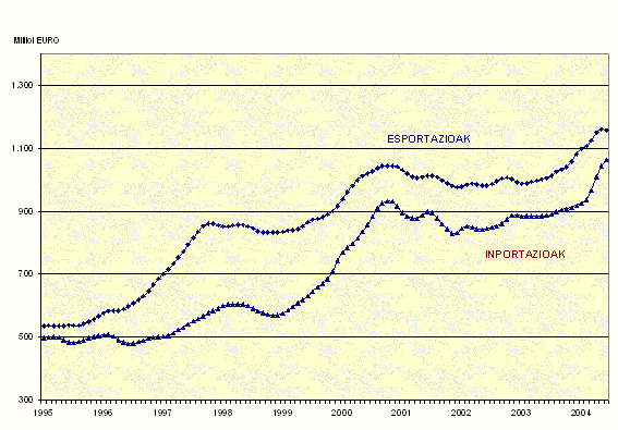 Europar Batasuna helburu duten esportazioak %10,6 hazi ziren eta hazkunde-tasak lortu zituzten Frantziara (%16,2), Alemaniara (%10,3), Erresuma Batura (%18,2), Portugalera (%6,8) eta Belgikara (%6,0) bideratutakoek. Italiara (%-9,0), Irlandara (%-35,5), Suediara (%-4,3) eta Danimarkara (%-1,3) egindakoak, aldiz, murriztu egin ziren.