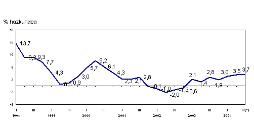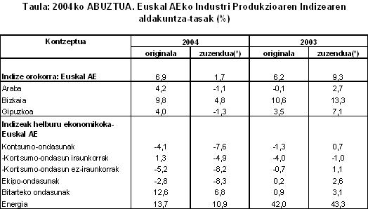2004ko abuztuan, urte arteko aldakuntzarik positiboenak, balio absolututan, sektore hauei egokitu zitzaizkien: material elektrikoa (%22,8), energia elektrikoa, gasa eta ura (%21,4), zurgintza (%17,2), ez-metalezko industria (%13,5) eta kautxua eta plastikoa (%12,8) arloei, besteak beste. Urte arteko hazkunde-tasa negatiboak, berriz, honako hauek izan zituzten: larruaren eta oinetakoen industria (%-42,5), garraio-materiala (%-20,5), elikagai-industria (%-13,6), ehungintza eta jantzigintza (%-1,0) eta petrolioa fintzea (%-0,1) arloek, batik bat.