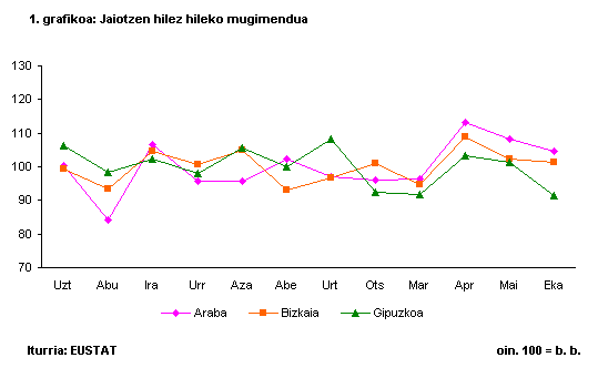 Jaiotzak amaren adinaren arabera banatzen baditugu, ikusiko dugu 3034 urteko amen taldea oraindik ere nagusi dela, eurak baitira erditzen direnen ia erdiak. Ondoren, goragoko taldea dago, hau da, 3539 urte artekoa (%25,6) eta 2529ko taldea beherago geratu da, erditzeen %18,5 ekarri baititu. Muturreko adinak dituzten taldeetan, 25 urtez behera amatu zirenak %5,3 izan ziren, eta 40 urtez gorakoen taldeak, berriz, jaiotzen %3,9 besterik ez zuen ekarri.