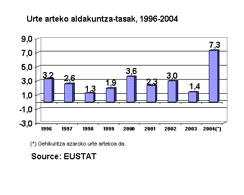 Sektoreak kontsumitutako lehengaien artetik, azken hamabi hilabetean, hauek izan dira inflazio-tasarik handienekoak: metalezko hodiak (% 43,1), burdina eta altzairua (% 39,1), asfaltozko produktuak (% 24,8), petroliotik eratorriak (% 18,2) eta zementutik eratorritako gaiak (% 9,8), batik bat. Bestalde, murrizketak izan dituzte urte arteko prezioetan (2004ko azarokoak, 2003ko azarokoekin alderatuta) lehengai hauek: beira (% -1,7), bulegoko materiala (% -1,0), energia elektrikoa (% -0,8) eta zura eta kortxoa (% -0,3) lehengaiek, alegia.