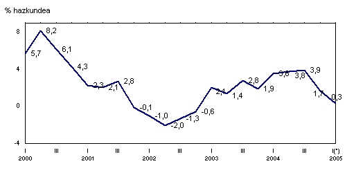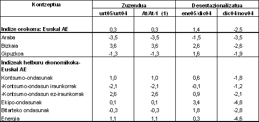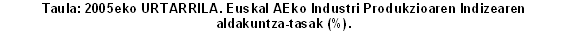 Sektoreka eta industri sektore handien sailkapenaren arabera, 2005eko urtarrileko indizearen bilakaerak hazkundeak izan zituen energian (%1,1), ekipo-ondasunetan (%0,1), eta kontsumo-ondasunetan (%1,0), 2004ko urtarrilaren aldean. Azken horiek bitan banatzen dira: kontsumo-ondasun ez iraunkorrek urte arteko %2,6ko hazkundea izan zuten, eta kontsumo-ondasun iraunkorrek, aldiz, %2,1eko atzerakada. Bestalde, bitarteko ondasunek urte arteko tasa negatiboak izan zituzten 2005eko urtarrilean, %-0,3koa, hurrenez hurren.