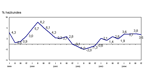 2004ko abenduan, urte arteko aldakuntzarik positiboenak, balio absolututan, sektore hauei egokitu zitzaizkien: energia elektrikoa, gasa eta ura (%21,2), metalezko eta ez-metalezko meak (%4,1), elikagai-industria (%4,1), garraio-materiala (%3,5) eta kautxua eta plastikoa (%2,7) arloei, besteak beste.