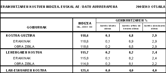 Otsailean, prezioaren hazkunde handienak, besteak beste, asfaltozko produktuetan (%3,7), petrolioaren eratorrietan (%2,8) eta kare, igeltsu eta eskaiolan kontsumitutako lehengaietan eman da. Aitzitik, prezioa murriztu da, besteak beste, bulegoko materialen (%-3,5), energia elektrikoaren (%-1,7), olio eta koipeen (%-1,1), beiraren (%-0,6), burdin eta altzairuaren (%-0,3) eta erauzketa-agregakinen (%-0,2) lehengaietan.
