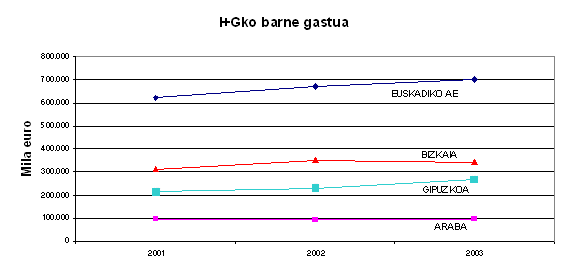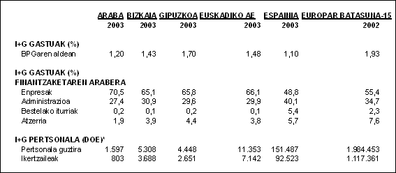Finantzaketa pribatuaren garrantziak (%66,1), estatuko batez bestekoaren gainetik (%48,8) kokatzen ditu hiru lurraldeak, Alemania, AEB, Suitza eta Belgikaren parean, enpresek ikerketara bideratutako baliabideei dagokionez. Atzerritik etorritako funtsei dagokienez, 2002an baino 29 milioi euro gutxiago lortu ziren 2003an eta guztizkoaren %3,8 hartu zuten.