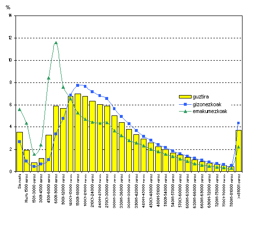 Euskal Autonomia Erkidegoko familien batez besteko sarrerak, zehazki, batez besteko errenta pertsonala 2,4 aldiz izan zen. Familia-errenta osoa, familia bakarreko kide guztien errenta pertsonal osoak gehitzean ateratzen da, baina kide horiek guztiak ezinbestean izan behar dute adinez nagusiak eta errentaren bat jaso behar izan dute. Errenta pertsonalarekin bezala, Arabak zeukan familia-errenta handiena (31.305 euro), Euskal Autonomia Erkidegoko familien batez bestekoa baino ia 1.300 euro gehiago. Horren atzetik, Gipuzkoak 30.218 euroko familia-errenta zeukan, batez bestekoa baino 200 euro baino pixka bat gehiago. Eta, azkenik, Bizkaiak 29.549 euroko familia-errenta zeukan, Erkidegorako familia-errenten batez bestekoa baino 460 euro gutxiago.
