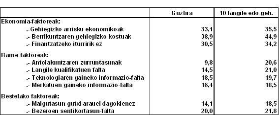 Azkenik, 2001-2003 aldian euren asmakuntzak edo berrikuntzak babesteko asmoz patenteak edo beste babes-metodo batzuk erabili dituzten enpresa berritzaileak %22,1 dira. Horrela, aldi horretan, enpresen %8,0ak patenteren bat eskatu zuen eta %5,6ak patenteren bat indarrean zuen 2003. urtearen amaieran. Halaber, aldi berean, enpresa berritzaileen %15,6ak beste babes-metodo batzuk erabili ditu. Azken hauen artean daude fabrika-markak, egile-eskubideak, e.a.
