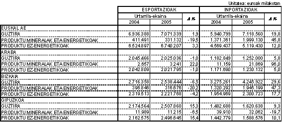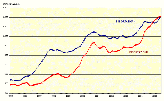 Europar Batasuna-25 helburu duten esportazioak %5,1 igo ziren; herrialde garrantzitsuenetakoak aipatzearren, %20,4 hazi ziren Italiara joan zirenak, %7,3 Alemaniarakoak, %3,8 Erresuma Baturakoak, %5,7 Portugalerakoak eta %30,9 Belgikarakoak. Murriztu egin ziren, ordea, Frantziara (%-0,2), Herbehereetara (%-8,6), Irlandara (%-4,2%) eta Poloniara (%-3,5) joan ziren esportazioak. Europar Batasunetik etorritako inportazioak %9,0 hazi ziren 2005eko lehenengo seihilekoan, gure bezero/hornitzaile nagusienak indartuz: Frantzia (%0,8), Alemania (%6,5), Italia (%6,9) eta Erresuma Batua (%5,5).