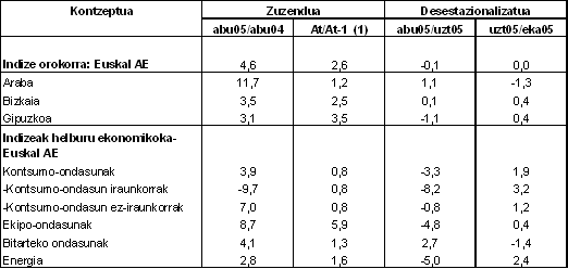 Sektoreka, industri sektore handien sailkapena kontuan hartuta, 2005eko abuztuko indizearen bilakaerak honako aldakuntzak izan zituen, 2004ko abuztuaren aldean: energia %2,8 hazi zen, ekipo-ondasunak %8,7, bitarteko ondasunak %4,1 eta kontsumo-ondasunak %3,9. Azken horiek honela banatu ziren: kontsumo-ondasun ez-iraunkorrak %7,0 hazi ziren, eta kontsumo-ondasun iraunkorrak %9,7 murriztu ziren.