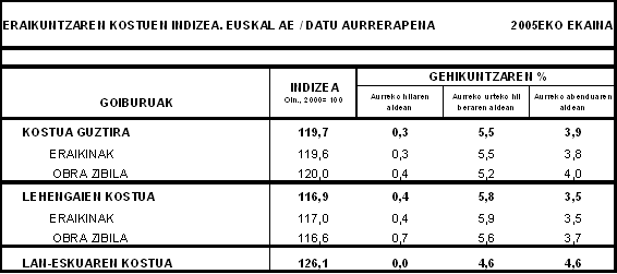 Ekainean, prezioen hazkunde handienak, besteak beste, ondoko hauetan kontsumitutako lehengaietan eman da: petrolioaren eratorriak (%9,3), asfaltozko produktuak (%6,7), burdina eta altzairua (%1,5), erauzketa-agregakinak (%0,7) eta lur egosiak (%0,5). Ondoko hauetako lehengaien prezioak, berriz, gutxitu egin dira, besteak beste: karea, igeltsua eta eskaiola (%-3,0), energia elektrikoa (%-1,7), metalezko tutueriak (%-0,7) eta egiturak eta galdaragintza (%-0,5).