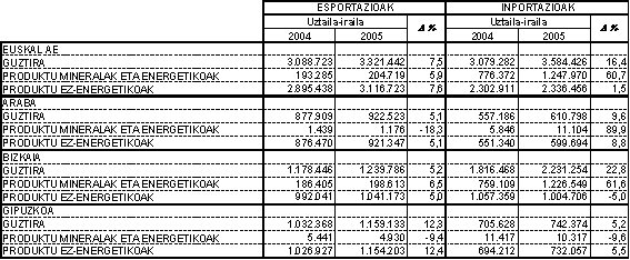 Europako Batasunerako esportazioak %6,8 hazi dira 2004. urteko hirugarren hiruhilekoko kopuruarekin erkatuta. Urtetik urterako bolumena eta hazkundea aintzat hartuta, esportazio horien artean Frantziarakoak (%5,3), Italiarakoak (%11,8) eta Erresuma Baturakoak (%21,6) azpimarratu behar dira; halaber, Alemaniarako esportazioak jaitsi egin dira (%-3,8). AEBetarako (%29,8) eta Mexikorako (%23,0) esportazioak suspertu egin dira, baina Japoniarakoak jaitsi egin dira (%-28,3).