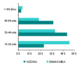 EUSTATen datuen arabera, ostatua eta janaria eskaintzen duten zentroetan etxerik gabeko 1.833 pertsonari ematen zaio arreta eta horien %48 atzerritarrak dira. Gainera, batez beste, 5 urte inguru daramatzate Espainian eta 2 urte baino pixka bat gehiago Euskal Autonomia Erkidegoan. Kontinenteen arabera, gehienak afrikarrak dira (%61), gero europarrak (%26) eta hirugarren postuan amerikarrak (%12). Zehatzago esanda, gehienak Marokokoak (%37), Aljeriakoak (%16), Errumaniakoak (%8) eta Boliviakoak (%3,4) dira.