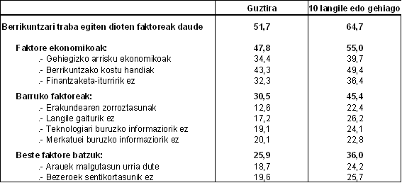 Jarduera-sektorearen arabera industria da nagusi establezimendu berritzaileen %22,3arekin; eta, zehatzago, sektore hauek: papera, edizioa eta arte grafikoak (%47,5) eta industria kimikoa (%43,3). Zerbitzuen sektorean establezimenduen %17,7 berritzaileak izan ziren, eta besteen gainetik gelditu ziren hezkuntza (%34,3) eta enpresei eskaintzen zaizkien zerbitzuak (%30,8). Azkenik, eraikuntzak %8,0ko ehunekoa lortu zuen.