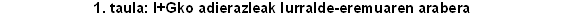 Emakumeek I+G jardueretan izan zuten partaidetzari dagokionez, Arabako langile guztien %29 eta Gipuzkoakoen %28 izan ziren emakumeak; Bizkaian, aldiz, %34 izan ziren emakumeak. Ehuneko horiek guztiak, dena den, Estatuko batez bestekoaren (%37,4) azpitik zeuden.