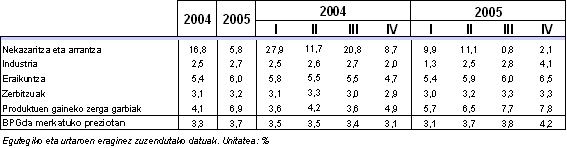 Eskariaren ikuspegitik, BPGaren urte arteko hazkundeari, batez ere, barne-eskariak eusten dio oraindik ere; izan ere, eskari hori urte arteko %3,9ko tasaraino iritsi da laugarren hiruhilekoan, eta aurreko urtearen aldean, 2004ko laugarren hiruhilekoan, kanpoko saldoaren ekarpen negatiboa txikiagoa izan da. Esportazioen urte arteko hazkundea, guztira, %4,0 izan da. Inportazioen gehikuntza, guztira, %3,6 izan da aurreko urteko denboraldi berarekin alderatuta.