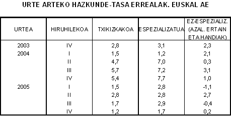 Txikizkako merkataritza espezializatuan, urte arteko hazkundeko tasarik handiena elikaduraren sektoreari dagokio. %5,6ko hazkunde nominala izan du; termino errealetan, %1,7koa. Pertsonen ekipamenduak, alabaina, bilakaera zentzuzkoagoa izan zuten: %2,2koa uneko eurotan eta %1,6koa euro finkotan. Bestelako kontsumo-ondasunen sektoreko produktuen salmenta %2,1 gehitu ziren termino nominaletan eta %4,4 termino errealetan. Etxeko ekipamenduko produktuen salmentek %-2,3 egin zuten behera termino nominaletan eta beherapen hori %-1,9raino igo zen termino errealetan. Azalera handi eta ertaineko atalean elikadura nagusi den azpisektoreek %3,5 gehitu zituzten urte arteko salmentak, gainerako produktuak nagusi diren azpisektoreek, aldiz, %3,0.