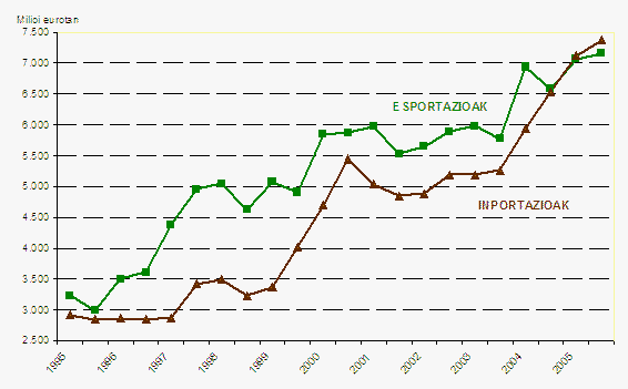 Herrialdeka, Euskal Autonomia Erkidegoko esportazioen ia erdia Frantziara, Alemaniara, Erresuma Batura eta Italiara joan zen. Lau herrialde horiek zehazki gure esportazioen %49,6 hartu zuten 2005ean. Aitzitik, soilik gure inportazioen %38,1 etorri zen lau herrialde horietatik. Frantziarekin (gure bezero nagusia) merkataritza-saldoaren superabita 1.252,3 milioikoa izan zen 2005ean. Esportazioen estaldura-tasa, inportazioaren gainean, %182,0koa izan zen. Alemaniarekin izandako estaldura-tasa %109,3koa izan zen, Italiarekin %107,0koa eta Erresuma Batuarekin %103,2koa.
