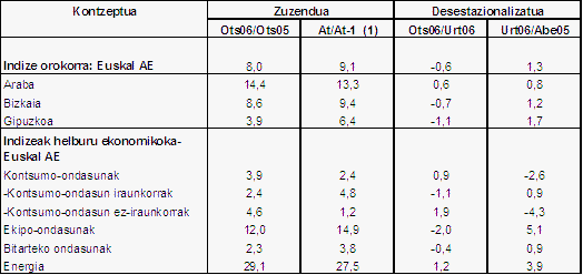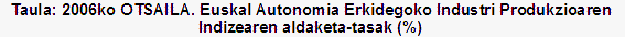 Sektoreen arabera, eta industri sektore nagusienak sailkatu ostean, 2006ko otsaileko indizearen bilakaera hazi egin da sektore guztietan, 2005eko otsailaren aldean: energia (%29,1), ekipamenduko ondasunak (%12,0), tarteko ondasunak (%2,3) eta kontsumo-ondasunak (%3,9). Azken hauetan bi atal bereiz daitezke: kontsumo-ondasun iraunkorrak, urte arteko %2,4ko hazkundea izan dutenak, eta kontsumo-ondasun ez iraunkorrak, %4,6ko hazkundea izan dutenak.