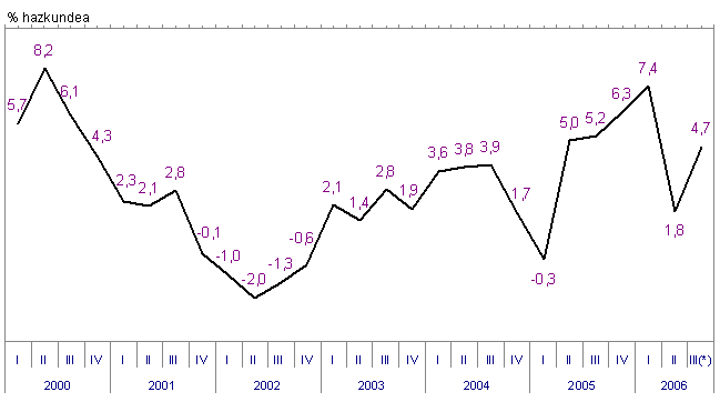 Sektoreen arabera, eta industri sektore nagusienen sailkapena kontuan hartuta, 2006ko abuztuko indizearen bilakaerak (2005eko abuztuaren aldean) aldaketa positiboak izan ditu sektore guztietan: ekipamenduko ondasunak %29,0 hazi dira; tarteko ondasunak %7,3 igo dira; energia %2,9 igo da, eta kontsumoko ondasunak %1,2 igo dira, kontsumo-ondasun iraunkorrek eta kontsumo-ondasun ez iraunkorrek izandako gehikuntzen ondorioz (%5,2 eta %0,4 hurrenez hurren).