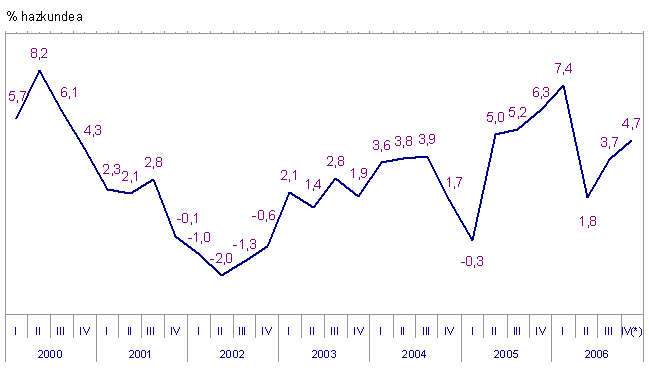 Sektoreka, industri sektore handien sailkapena kontuan hartuta, 2006ko urriko indizearen bilakaerak honako aldakuntzak izan zituen, 2005eko urriaren aldean: Ekipo-ondasunak %10,0 hazi ziren; Bitarteko ondasunak %3,8 igo ziren; Kontsumo-ondasunek %1,6ko gorakada izan zuten, Kontsumo-ondasun iraunkorrek (%3,6) eta Kontsumo-ondasun ez-iraunkorrek izandako igoeren eraginez; baina, Energia %2,8 jaitsi zen.