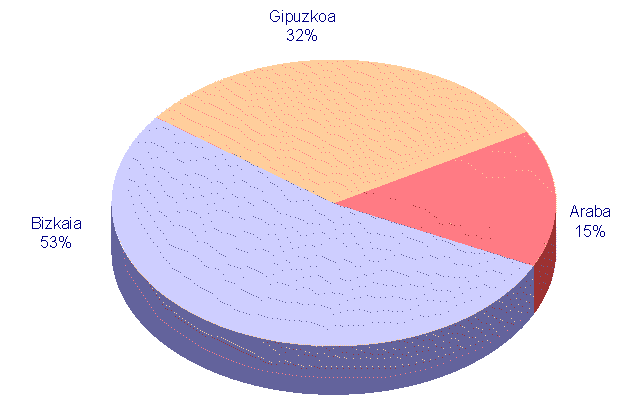Herrialdeka, Bizkaiak Balio Erantsi Gordinaren %53,0 dakar; Gipuzkoak % 31,5 eta Arabak %15,5.
