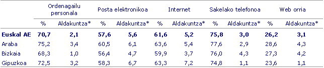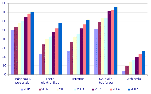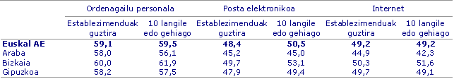 10 enplegatu eta gehiagoko enpresen artean, %93,5ek Interneteko sarbidea dute. Tamaina horretan ADSL lerroak dira, baita ere, sarbide nagusia (%87,1); gero, urrun, RDSI lerroak datoz (%14,3), modema (%12,9), beste lerroak (%!3,4) eta sakelakoa (%11,4).