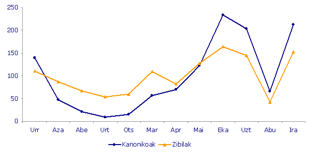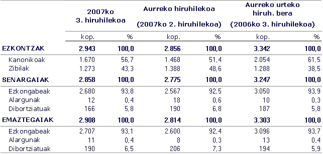 EUSTATen datuen arabera, 2007ko uztailean, abuztuan eta irailean guztira 2.943 ezkontza egin ziren Euskal Autonomia Erkidegoan, hau da, aurreko urteko hiruhileko beraren aldean kopuru hori %11,9 gutxitu zen. Ezkontza horien artean, bestalde, 370 bikote Arabara joan ziren bizitzera, 932 Gipuzkoara eta 1.553 Bizkaira. Euskal Autonomia Erkidegokotik kanpora bizitzera joan zirenak 88 izan ziren.