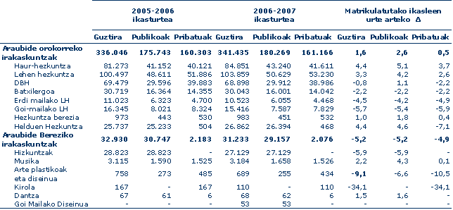 ESKOLA-JARDUERARI BURUZKO ESTATISTIKA, 2006/07 ikasturtea