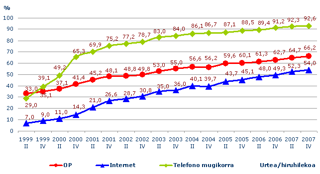 2007ko bigarren hiruhilekoaren aldean Euskal AEn %3,5ekoa izan zen Interneten erabiltzaileen kopuruaren hazkundea. Araban igo da gehien erabiltzaile kopurua, %9,2 hain zuzen ere; Interneten erabiltzaileen ehunekoari dagokionez, bigarren tokian jarri da, %47,5ekin. Gipuzkoan %2,2 izan da hazkundea eta azken hiru hiletan %46,8 izan da erabiltzaile kopurua. Bizkaian %2,9 izan da hazkundea, eta 14 urte baino gehiagoko biztanleriaren %47,7k erabiltzen du Internet, eskualdeak lehenengo dirauelarik.