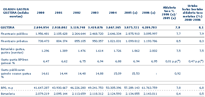 Euskal AEn, 2000-2006 urteen bitartean, osasun gastuaren urteko batez besteko hazkunde tasa %8,1 izan zen