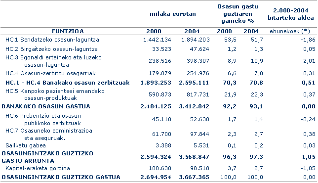 4. taula: Osasun gastua funtzioen arabera (milaka eurotan)