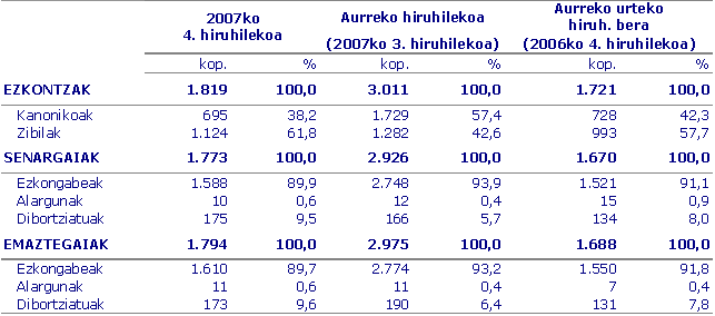 EZKONTZEN ESTATISTIKA (EZKE) 2007ko laugarren hiruhilekoa