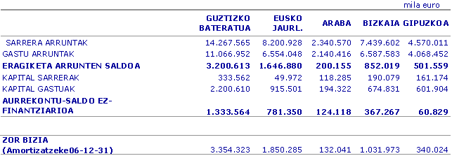 Gastu arruntaren atalen artean hazkunderik txikiena Pertsonal gastuetan izan zen, %5,7; ondoren, Transferentzia Arruntetan, %9,6, eta bestelako gastu arruntetan (funtzionamendu gastuak), %9,7. Oro har, gastu arruntaren hazkundea %8,6koa izan zen; kontuan hartuz sarrera arrunten hazkundea handiagoa izan zela (%12,1), azkenean 2006an eragiketa arrunten saldoan %26,0ko hazkundea dugu.