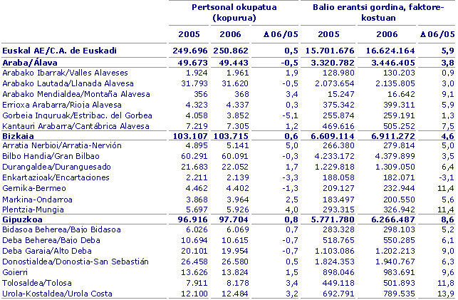 2006an Urola-Kostaldea izan da industri jardueran hazkunderik handiena (%13,9) izan duen eskualdea; ondoren Tolosa (%11,8), Gernika-Bermeo eta Plentzia-Mungia (%11,4 biek), Eustaten datuen arabera. Beste muturrean hazkunde negatiboa izan duen eskualde bakarra dugu, Enkarterriak (%-3,1). Ondoan Arabako Ibarrak (%+0,9) eta Gorbeiako Inguruak (%+1,3). Halere, hiru eskualde hauetan Euskal AEko industri enpleguaren %3 besterik ez dago, 7.952 pertsona inguru.