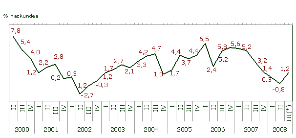 Sektoreka eta industri sektore handien sailkapenaren arabera, 2008ko abuztuko indizearen bilakaerak hazkundeak izan zituen Energian (%5,6) eta Ekipoko ondasunetan (%4,5), 2007ko abuztuaren aldean. Tarteko ondasunek %-0,9ko jaitsiera izan dute; Kontsumoko ondasunek %-9,3koa, Kontsumo iraunkorreko ondasunen (%-10,7), eta ez-iraunkorrekoen (%-9,0) jaitsierengatik.