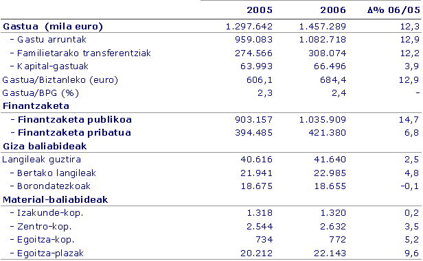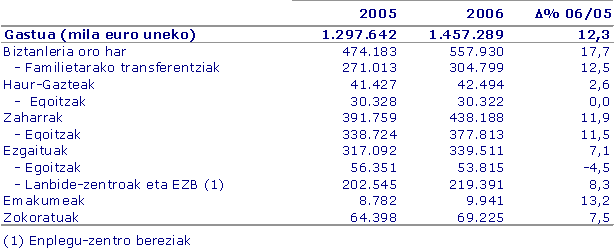 Gizarte zerbitzuetako gastua %12 gehitu zen 2006. urtean