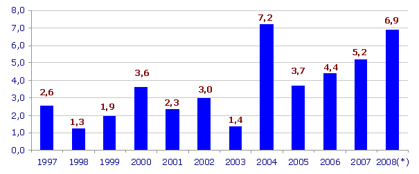 Sektorean kontsumitu diren lehengaien prezioari dagokionez, azken hamabi hilabeteetan inflazio-tasa handienak izan dituztenak ondokoak izan dira: Energia elektrikoa eta gasa (%27,2), Petrolioa fintzea (%12,8), Ura (%11,4) Metalurgia (%11,3) eta Ez-metalezko meak (%10,5). Bestalde, urteko arteko prezioetan (2008ko urria, 2007koaren aldean), igoera txikiagoak izan zituzten Zurgintzak (%1,9), Ez-metalezko industriak (%2,4) eta Makineriak (%2,6).