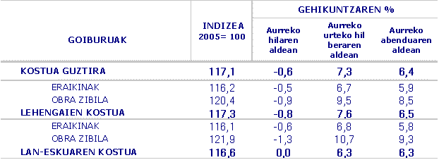 Irailean, abuztuaren aldean, prezio hazkunderik handienak kontsumitutako honako lehengaiek izan dituzte: energia elektrikoa eta gasa (%2,6), kautxu eta plastikoa (%0,2), zurgintza (%0,2) eta makineria (%0,2) adarretako lehengaiek. Aitzitik, hileko prezioetan murrizketak izan zituzten ondokoek: petrolioa fintzea (%-3,6), ez-metalezko meak (%-1,7), metalurgia (%-0,6), metalezko gaiak (%-0,3) ez-metalezko industria (%-0,2) eta altzarigintza (%-0,1).